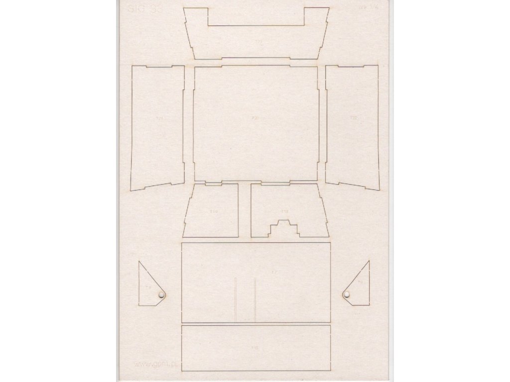 Laserem pálené doplňky pro model 15 cm sIG 33 (GPM 489) v měřítku 1:25