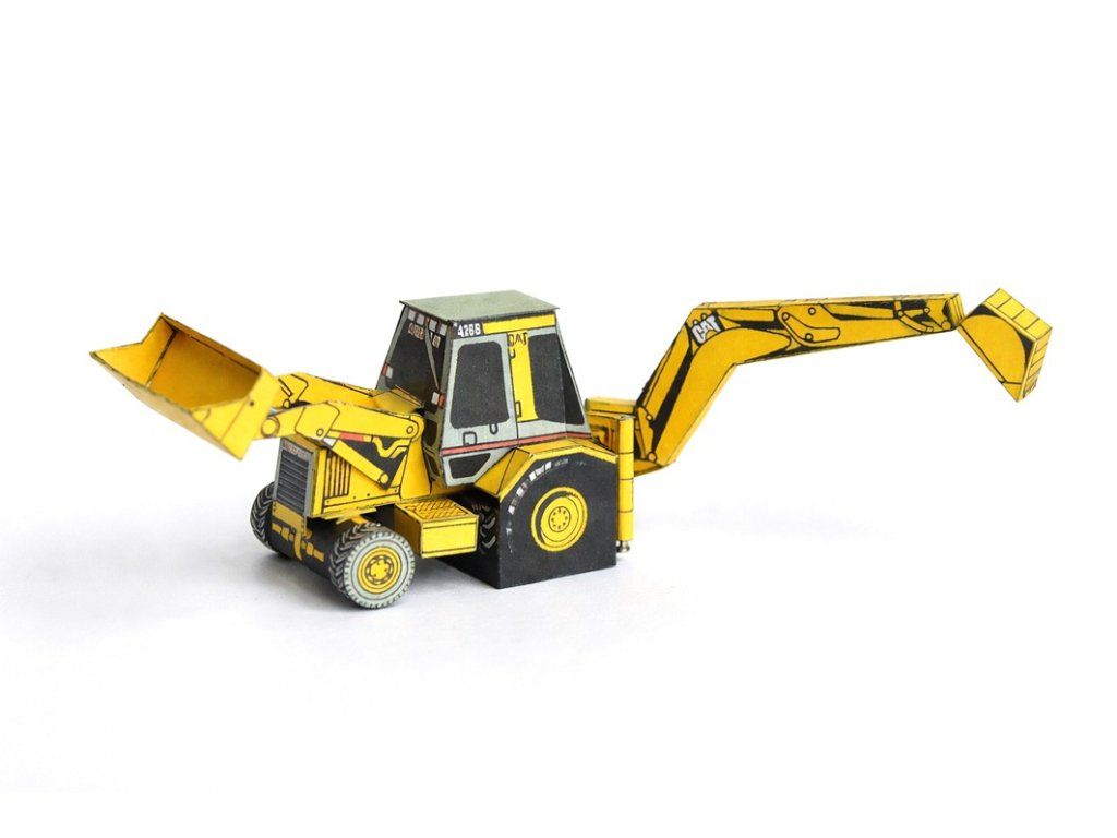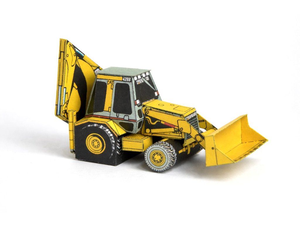 Papírový model - vystřihovánka univerzálního rypadla a nakladače Caterpillar 428B - minibox W102 z časopisu ABC