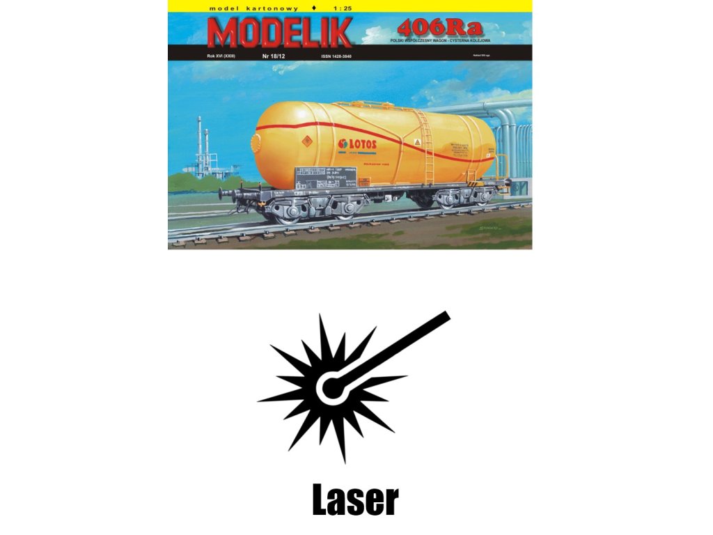 Laserem pálené doplňky a obtisky pro model vagónu 406Ra v měřítku 1:25 (Modelik 18/12)