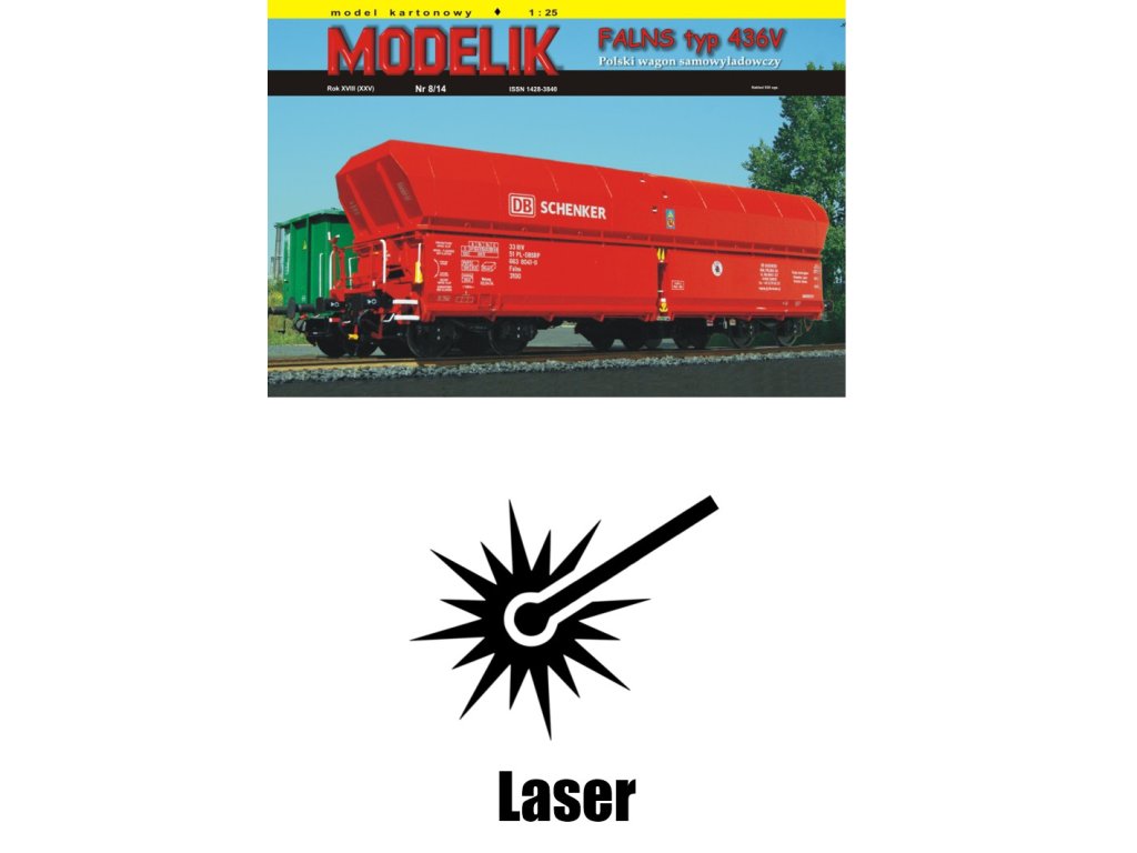 Laserem pálené doplňky a obtisky pro model vagónu FALNS typ 436V v měřítku 1:25 (Modelik 8/14)