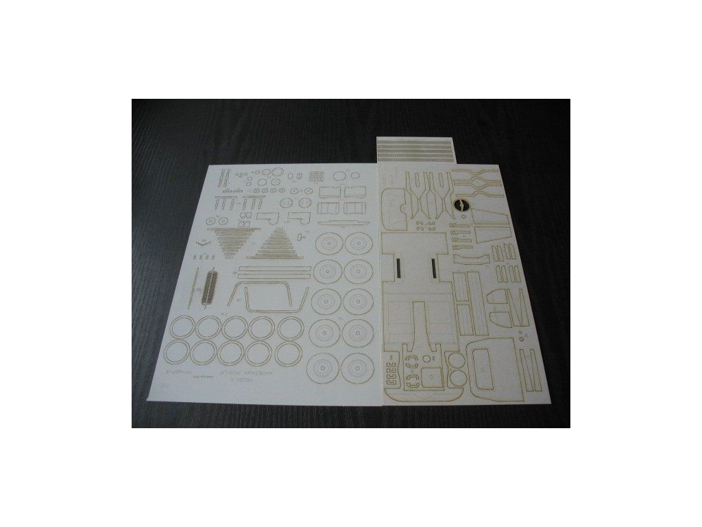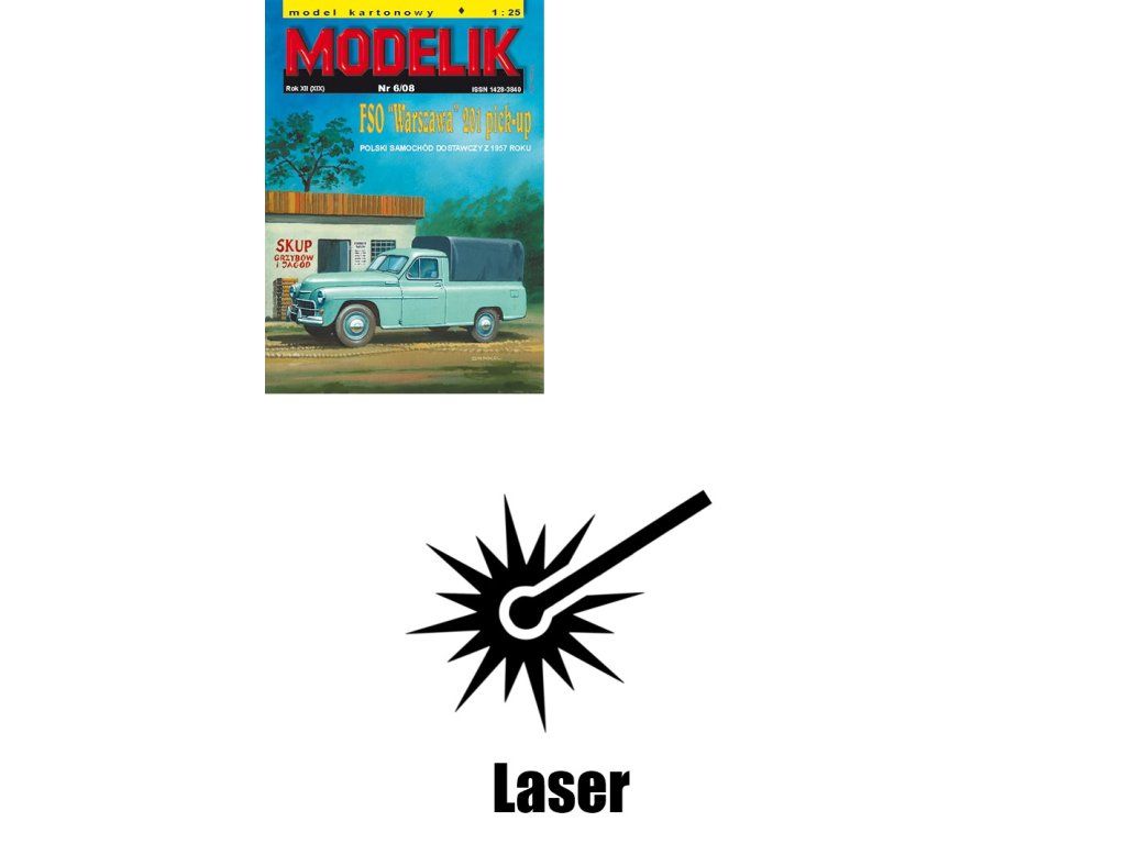 Laserem pálené doplňky pro model automobilu FSO Warszawa 201 pick-up (Modelik 6/08) v měřítku 1:25