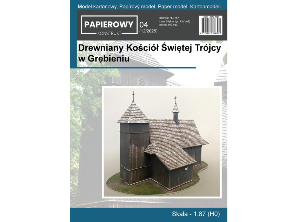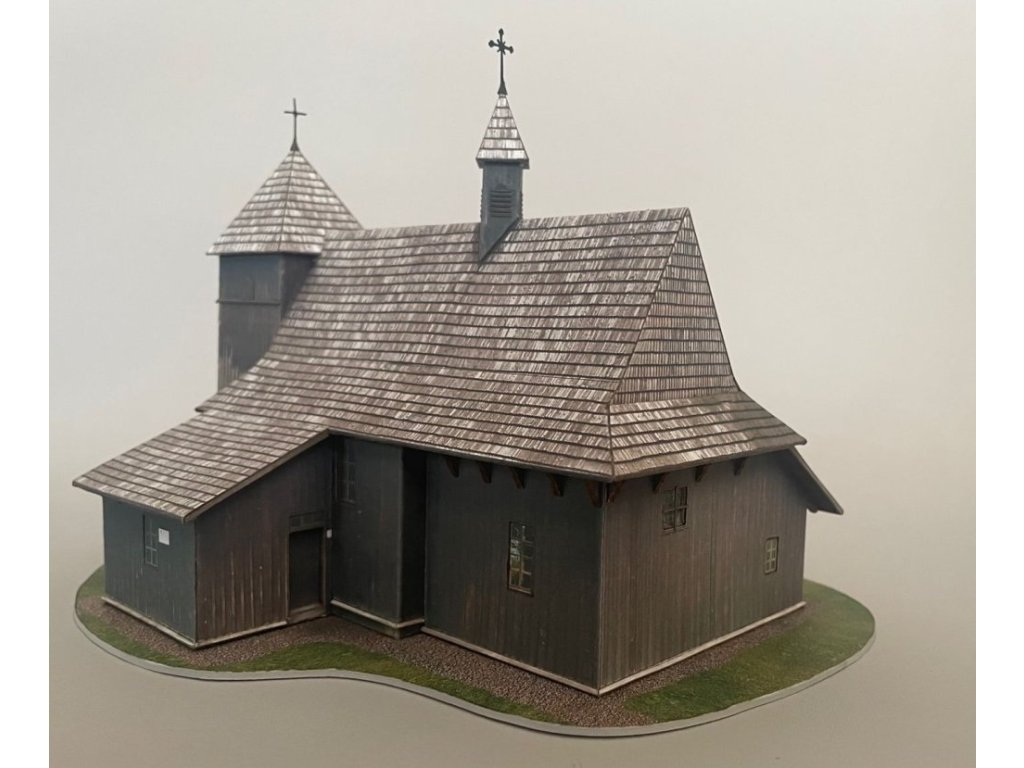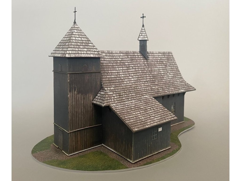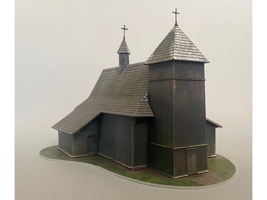 Papírový model - vystřihovánka dřevěného kostela Svaté trojice, Grebien (Polsko)