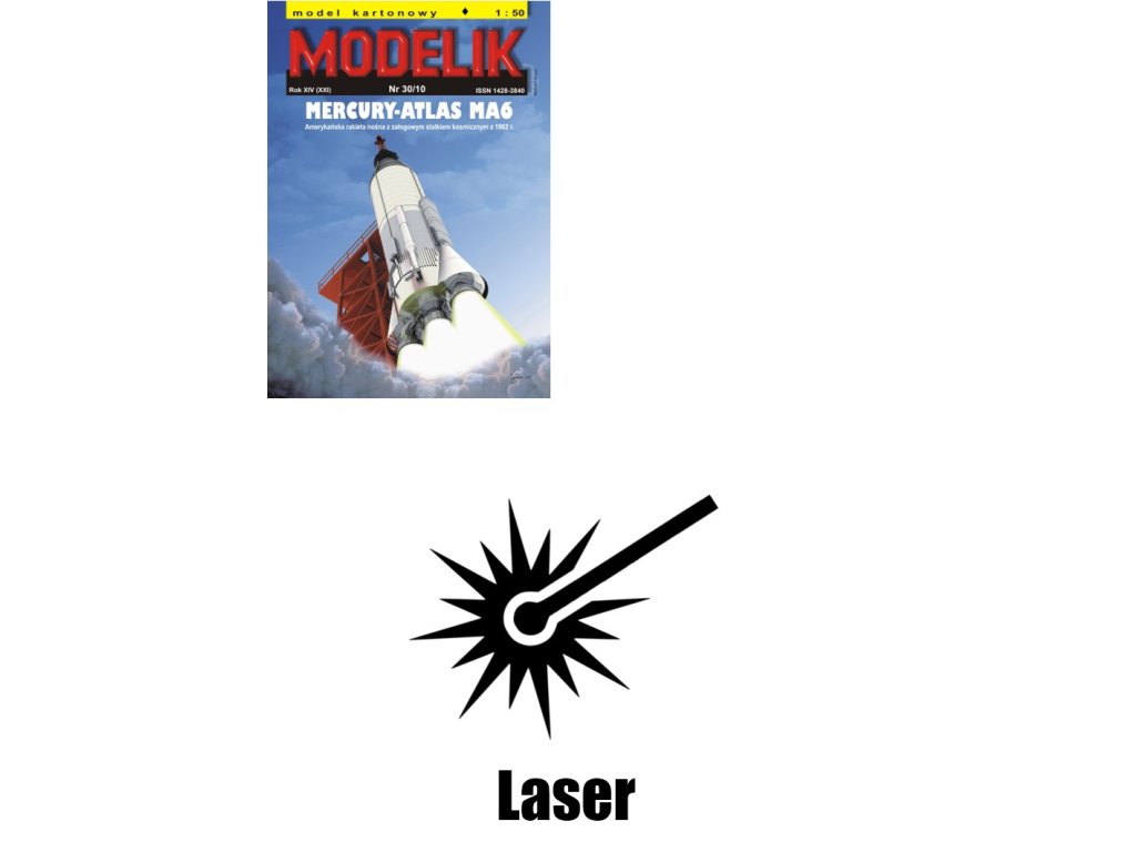 Laserem pálené doplňky pro model rakety Mercury-Atlas MA6 (Modelik 30/10) v měřítku 1:50
