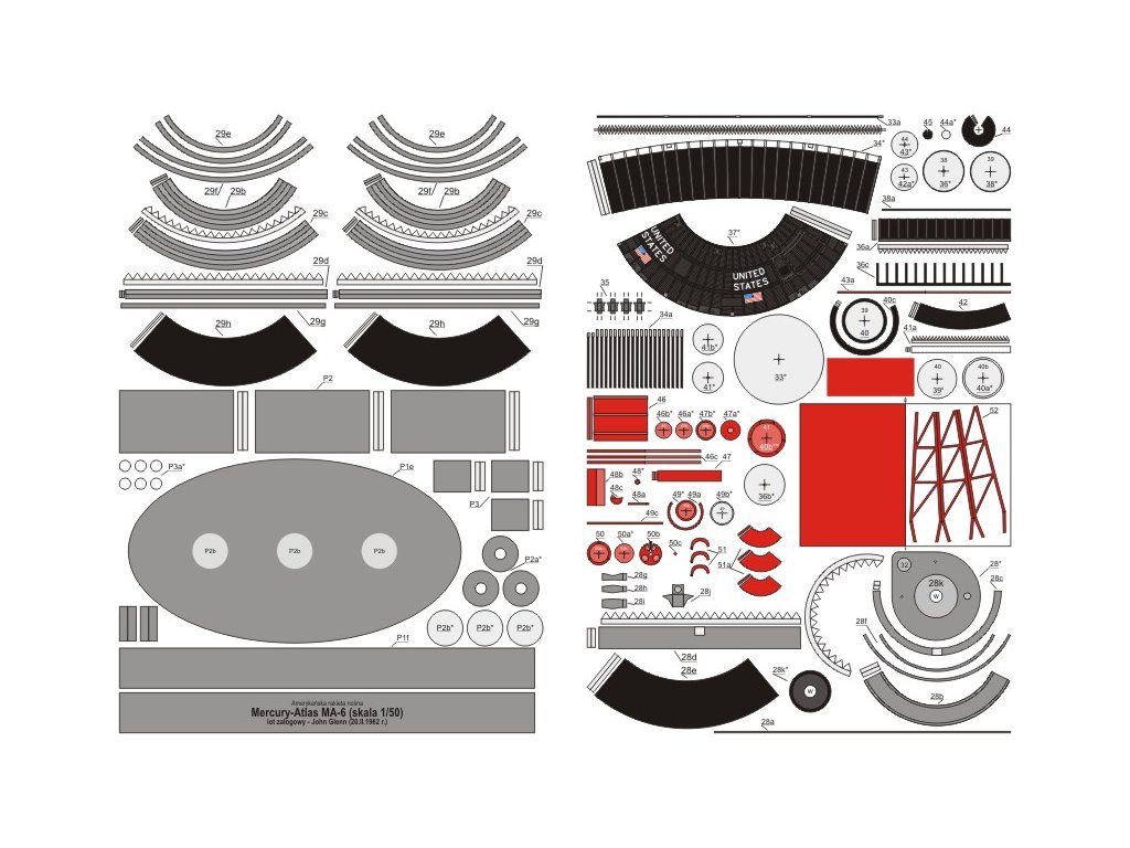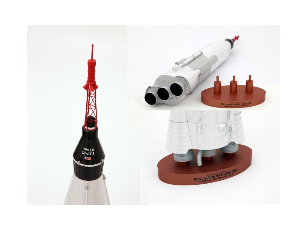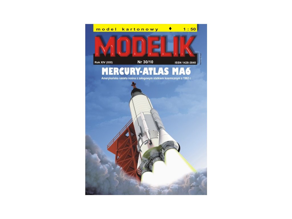 Papírový model - vystřihovánka americké kosmické posádkové lodě s nosnou raketou Mercury-Atlas MA6 z roku 1962