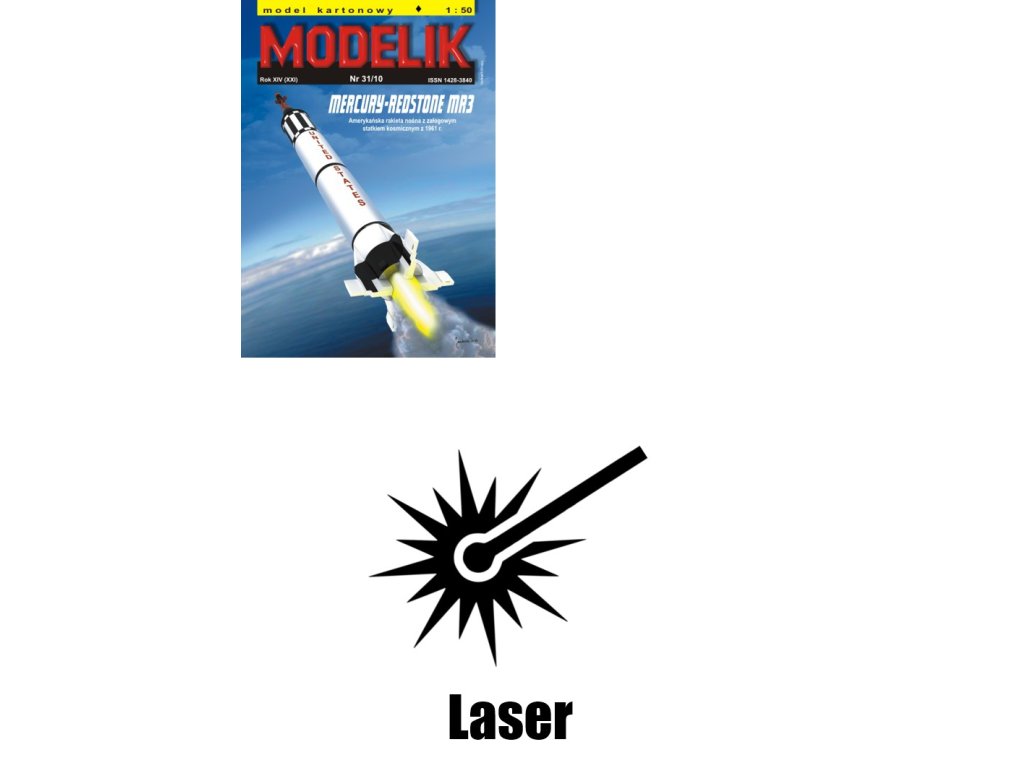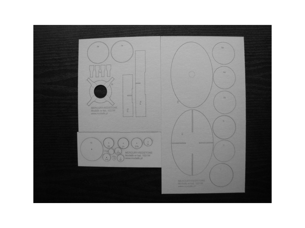 Laserem pálené doplňky pro model rakety Mercury-Redstone MR3 (Modelik 31/10) v měřítku 1:50