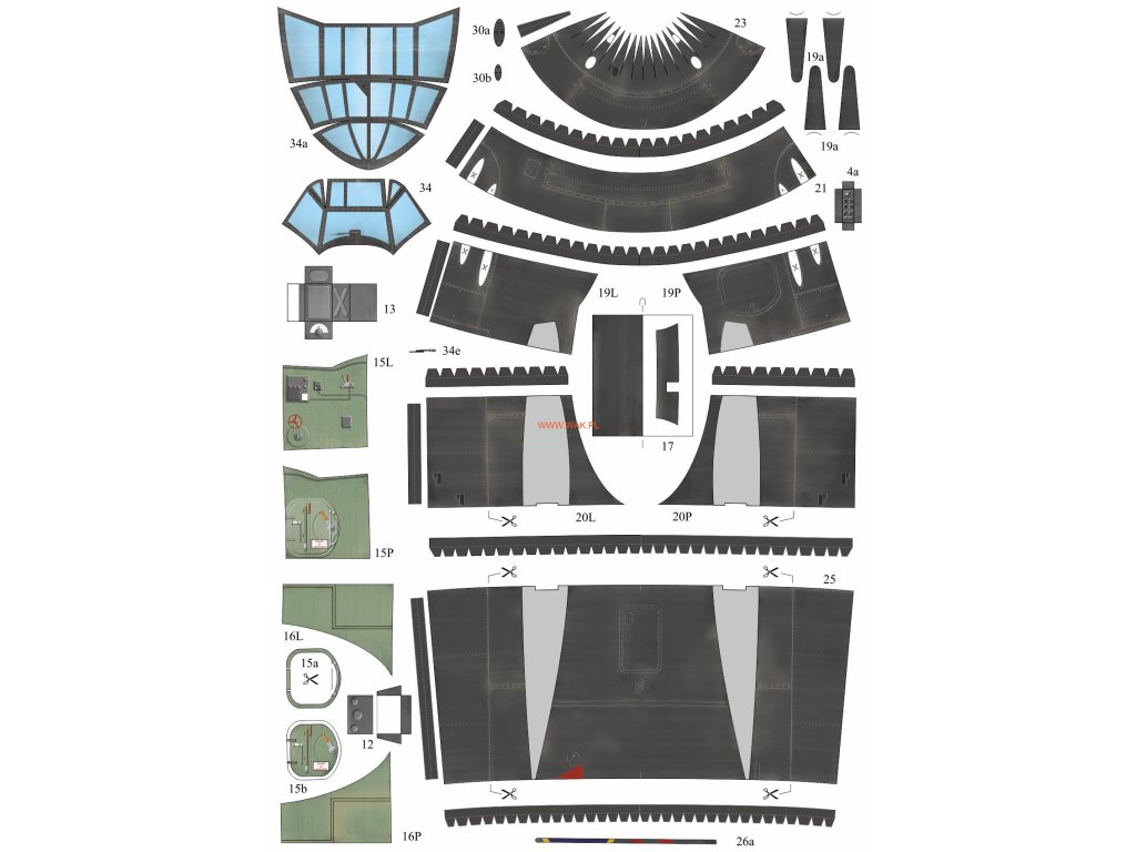 Papírový model - vystřihovánka nočního britského stíhacího letounu Mosquito NF Mk.II v kamufláži 23. RAF squadron (listopad 1942)