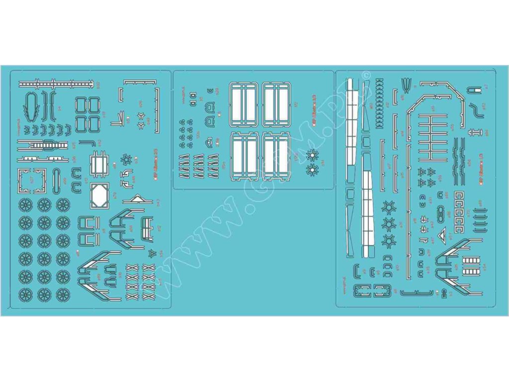 Laserem pálené doplňky pro model lodi ORP Albatros (GPM 679) v měřítku 1:100