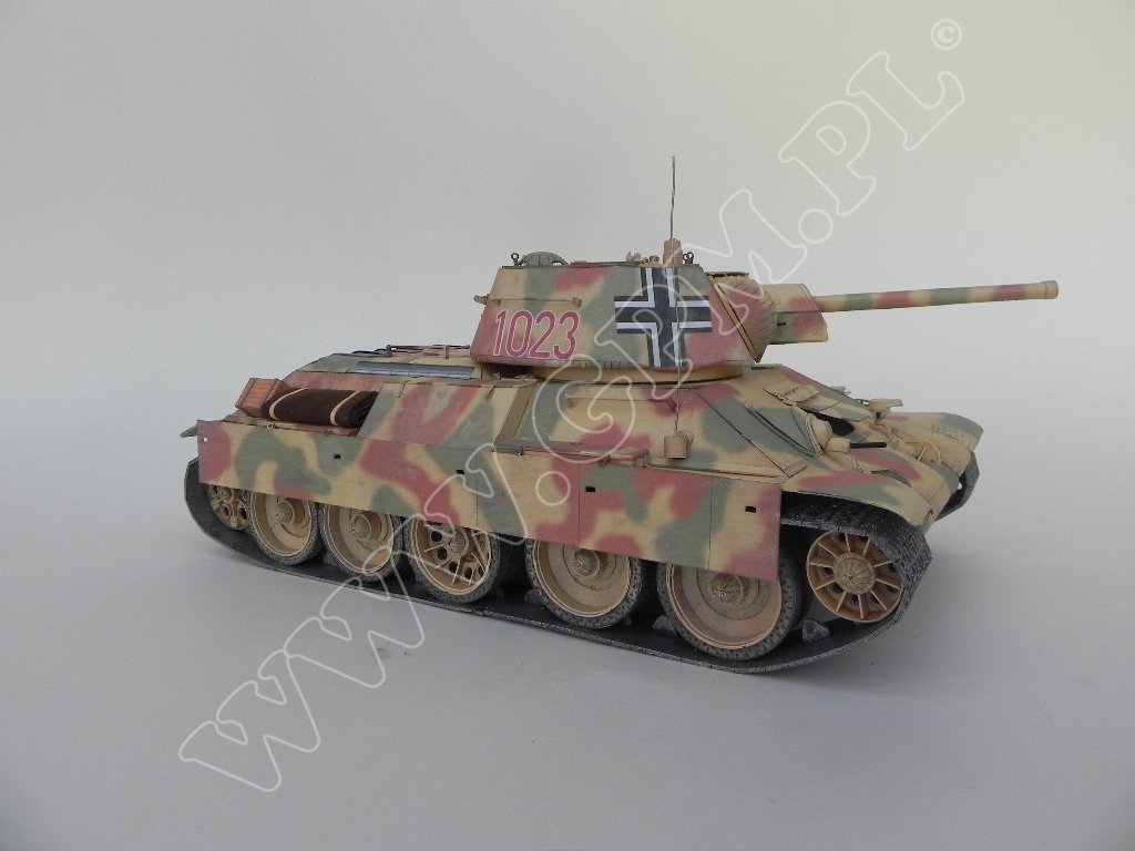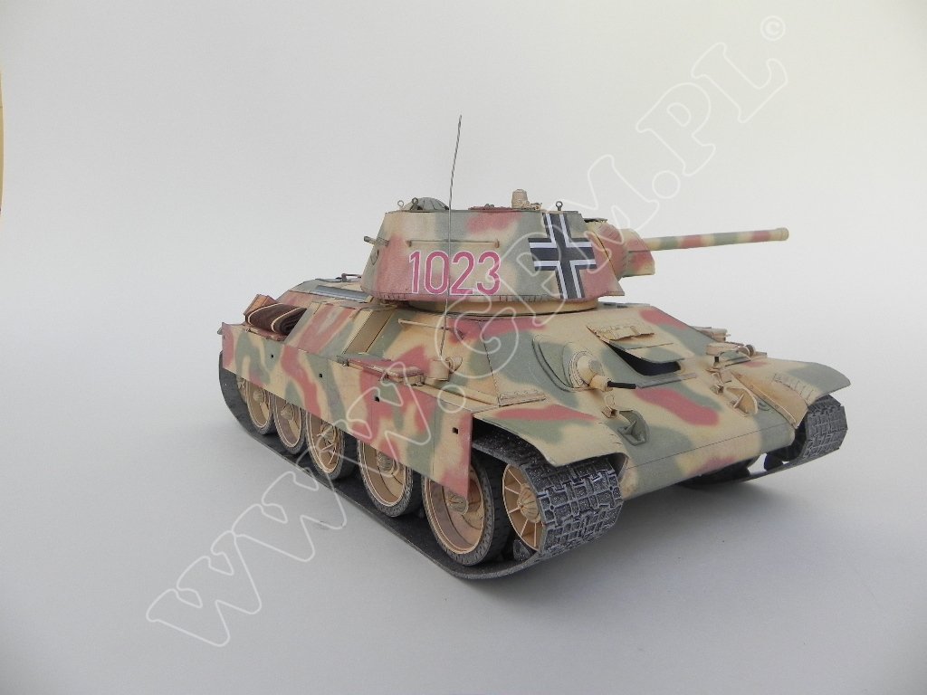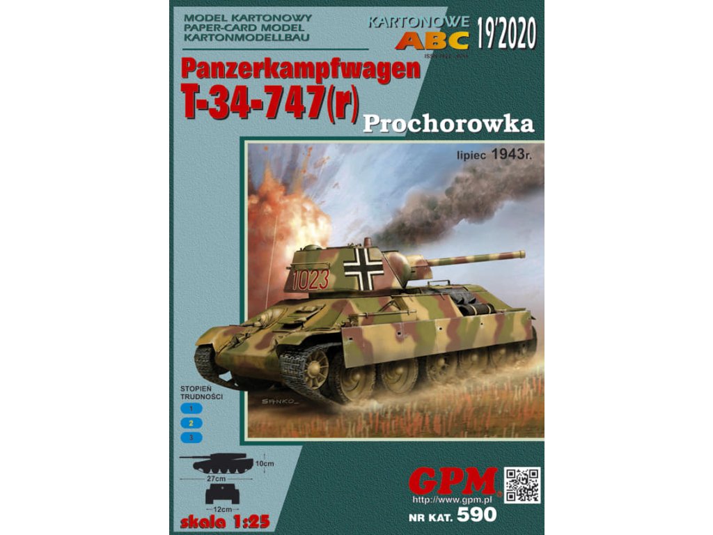 Papírový model - vystřihovánka tanku Panzerkampfwagen T-34-747 v barvách divize Das Raich, operace Citadela, bitva u Kurska, střet u Prochorovky