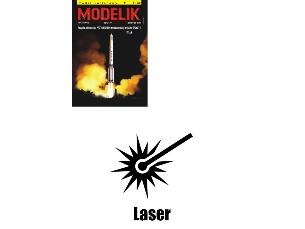 Laserem pálené doplňky pro model rakety Proton (8K82K) s modulem orbiltální stanice Saljut 1 v měřítku 1:50 (Modelik 31/11)
