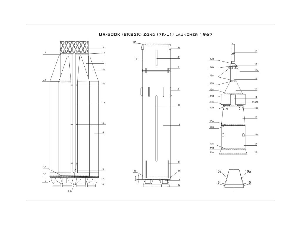 Papírový model - vystřihovánka sovětské rakety Proton (8K82K) s modulem ZOND (7K-L1) z roku 1967