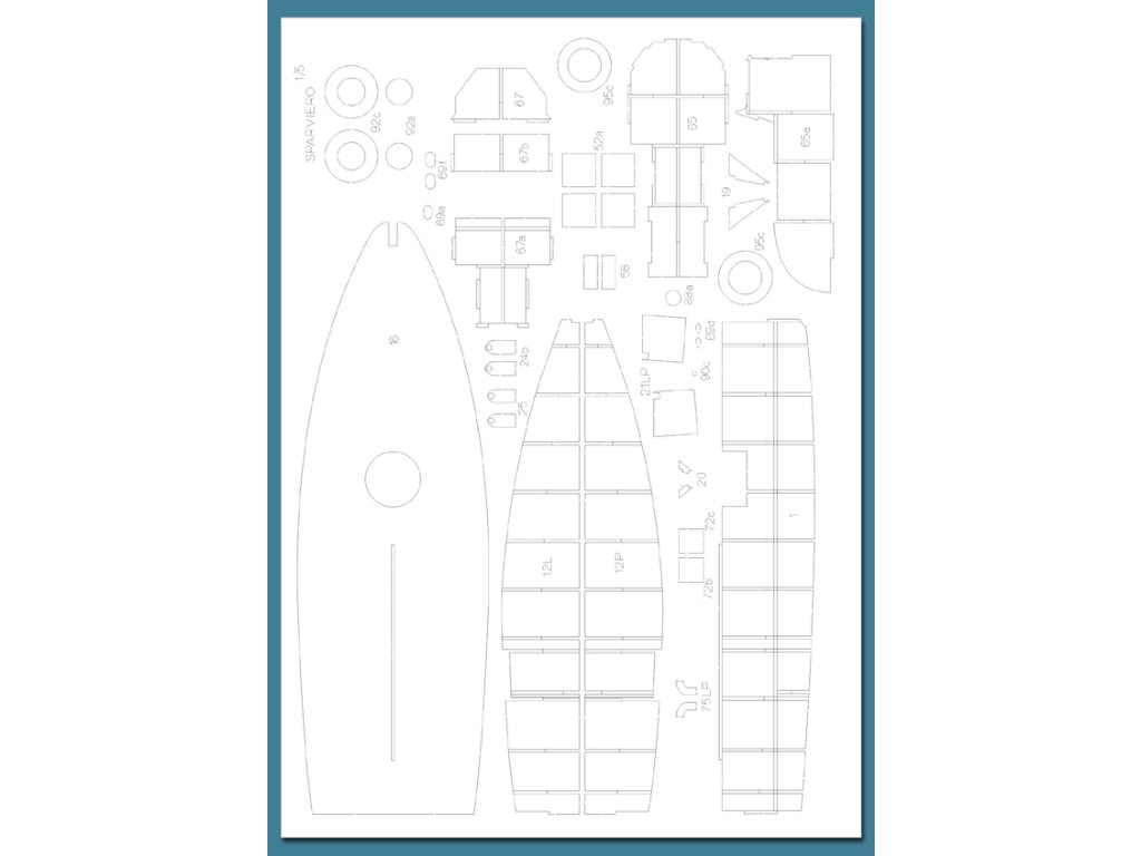 Laserem pálené doplňky pro model Sparviero P420 (GPM 472) v měřítku 1:100