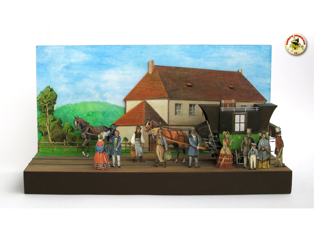 Papírový model - vystřihovánka - diorama Stanice koněspřežné dráhy České Budějovice - Linec