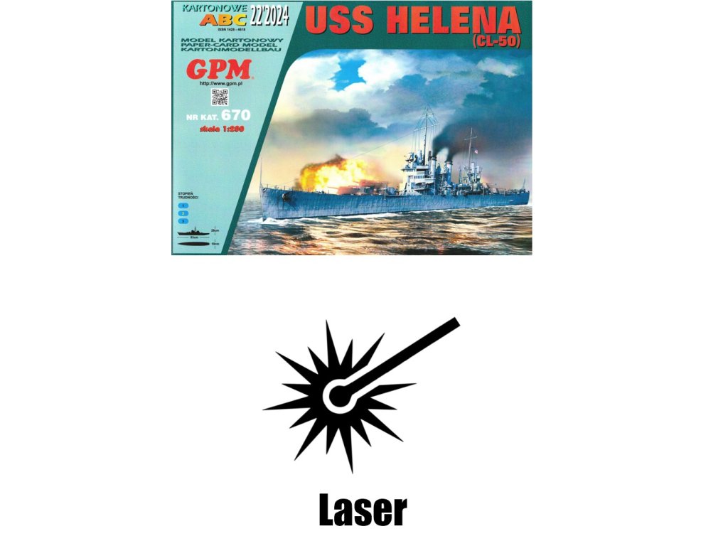 Laserem pálené doplňky pro model křižníku USS Helena (GPM 670) v měřítku 1:200