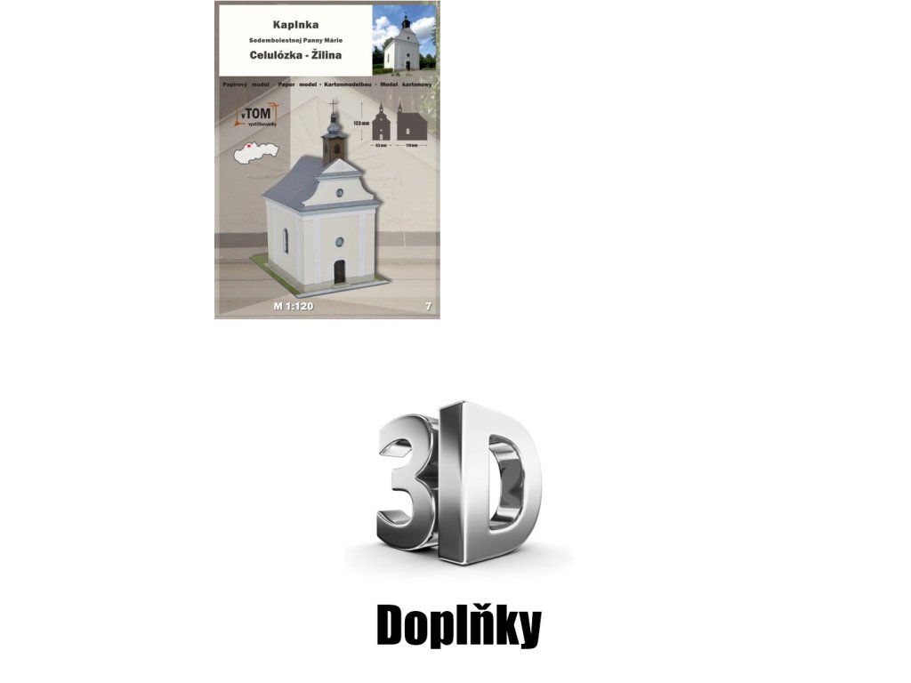 3D doplňky pro model kaplnky Sedembolestnej Panny Márie - Celulózky z Žilině od vTOM v měřítku 1:120